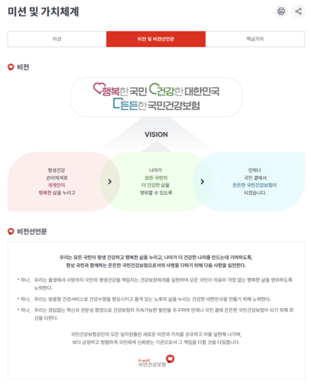 건강보험공단 분석자료 (핵심가치, 비전, 인재상, 각종 사업 등) 💡