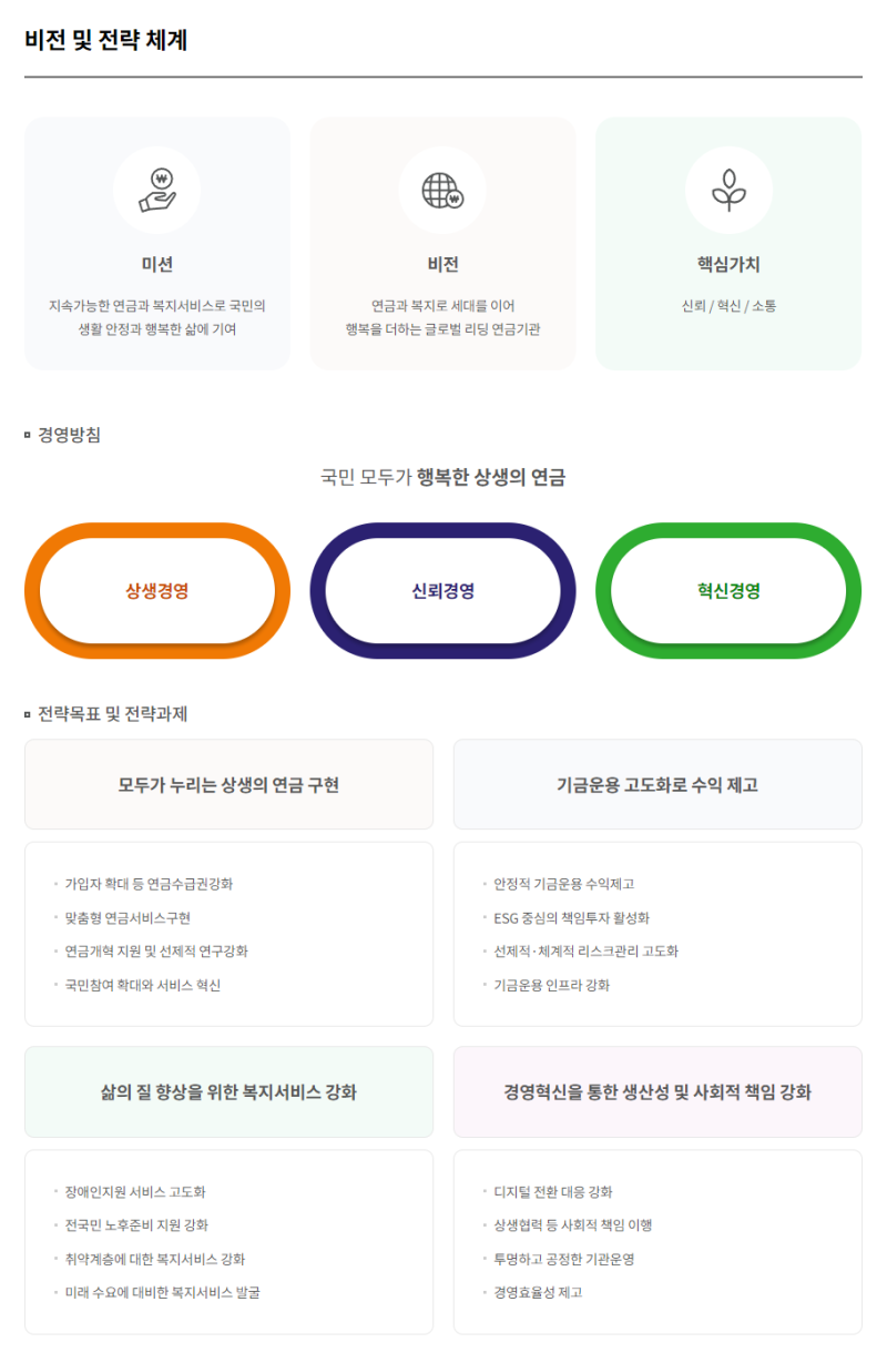 비전: 국민의 든든한 미래를 책임지는 연금보험 전문기관