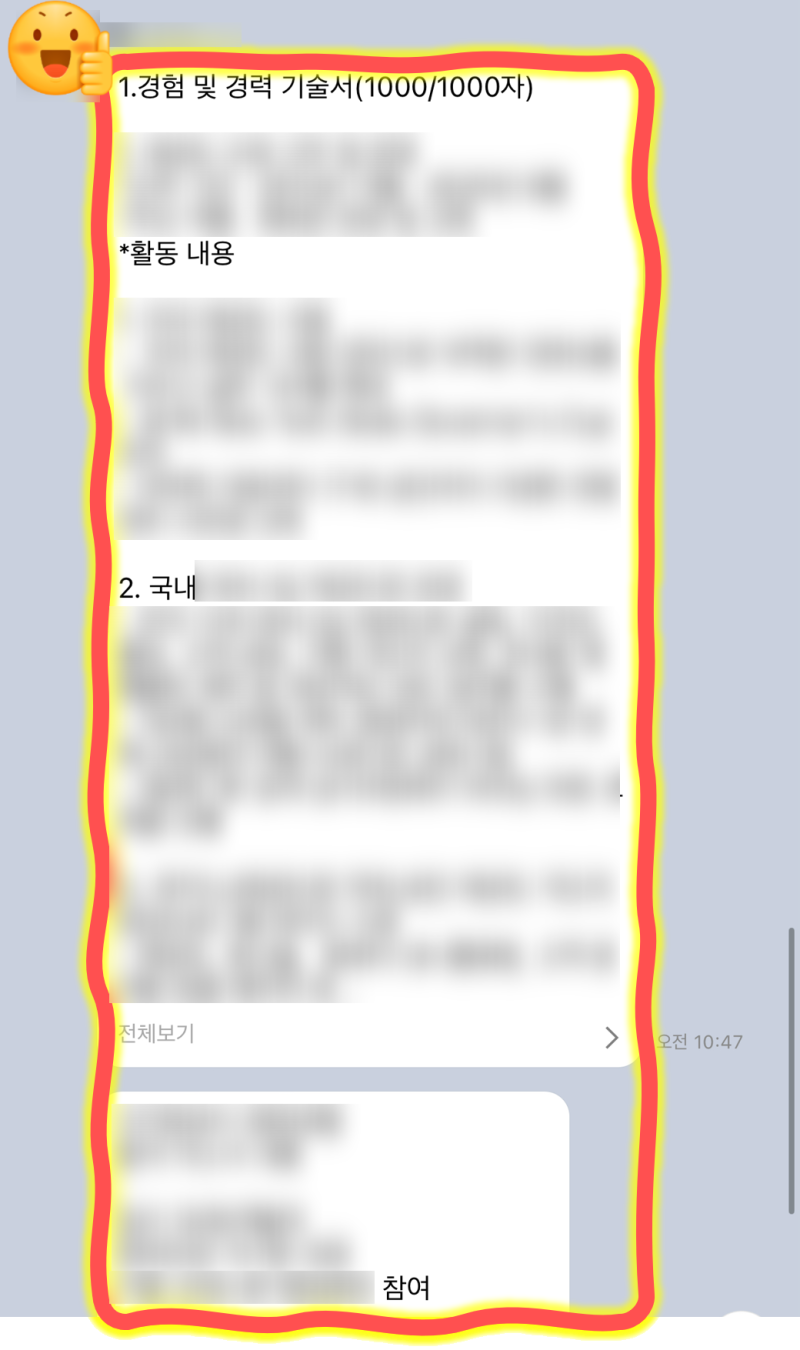 • >> 3단계: **초안 작성 및 피드백** (전문가 대필/첨삭 진행, 지원자님의 의견 꼼꼼히 반영!)