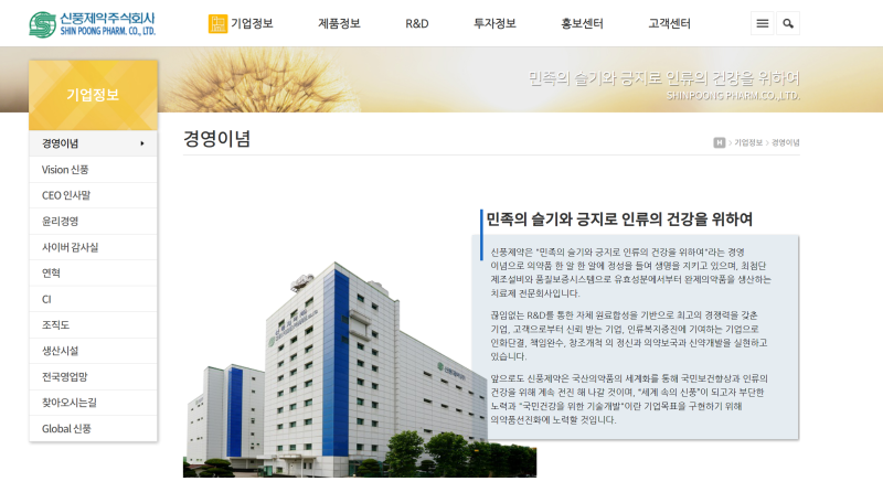 신풍제약 분석자료 (핵심가치, 비전, 인재상 등) 📊