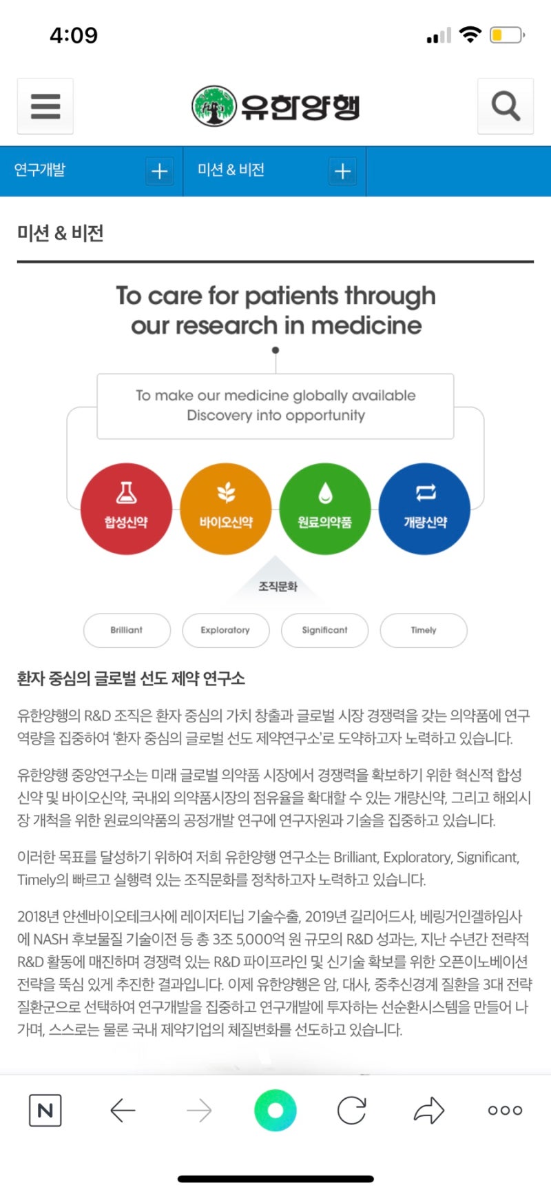 📊 [유한양행] 분석자료 (핵심가치, 비전, 인재상, 각종 사업 등)
