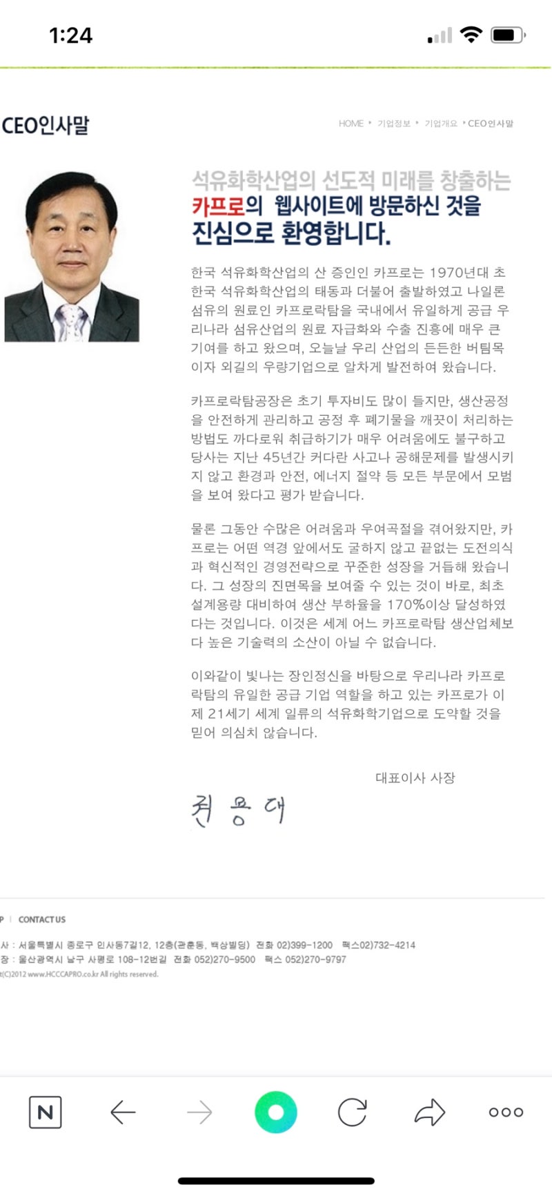 주요 사업: 카프로락탐, 암모니아, 황산암모늄, 복합비료 등