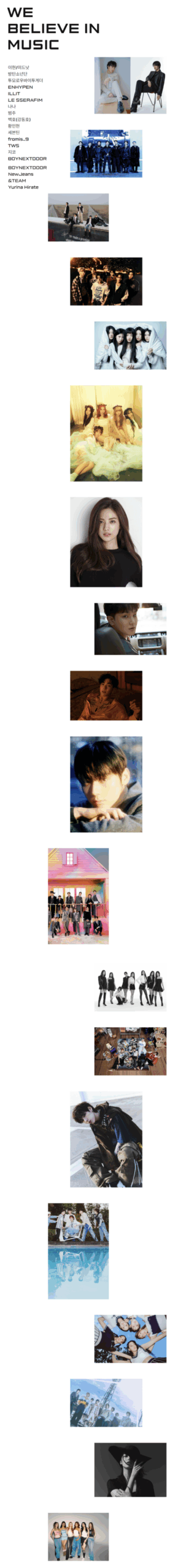 • * 주요 사업: 아티스트 매니지먼트, 음악 제작 및 유통, 콘텐츠 기획 및 제작 (영상, 게임 등), MD 및 라이선싱, 팬 커뮤니티 플랫폼 위버스(Weverse) 운영 등 다각적인 엔터테인먼트 사업을 영위하고 있습니다.