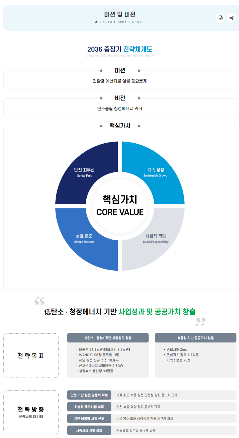비전: “청정에너지로 더 나은 세상을 만드는 한국수력원자력” 🌍 – 회사의 지향점을 이해하고 본인의 포부를 연결해야죠.