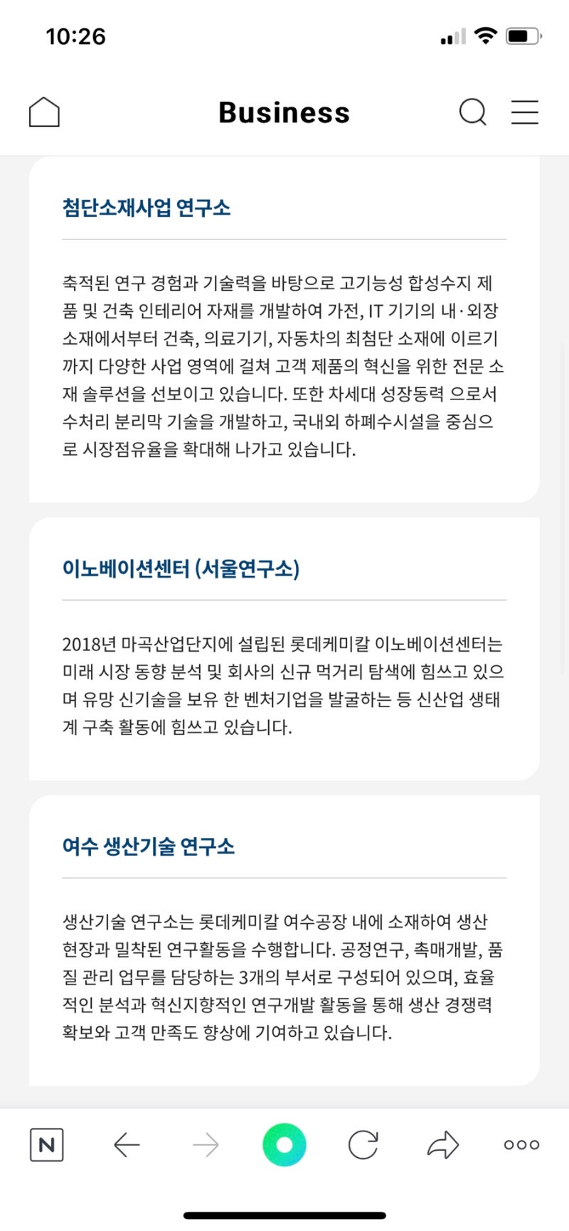 주요 사업: 기초화학, 첨단소재, 정밀화학 등