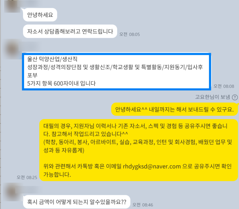 자소서 컨설팅, 어떻게 진행되었을까요?