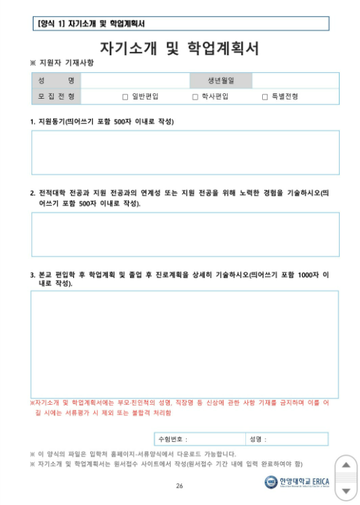 한양대학교 ERICA 캠퍼스 편입 자소서 문항 분석 & 작성법, 합격 후기