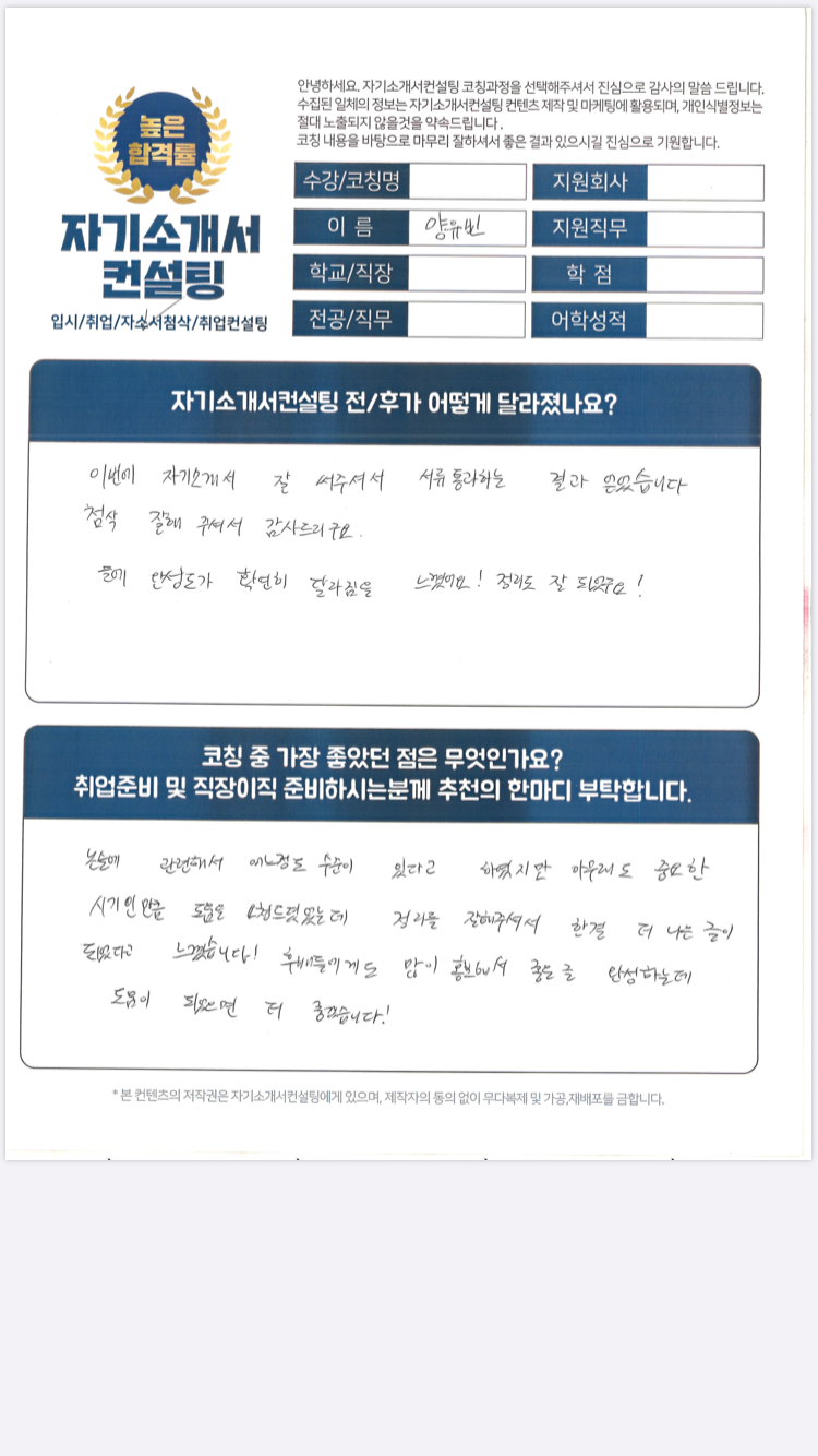 에쓰오일 생산직 합격 자소서 비법 공개! 전문가 첨삭 & 대필 후기