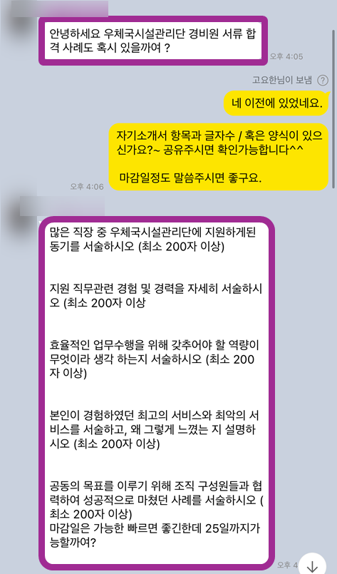 우체국시설관리공단 자소서 작성법, 자기소개서 문항 첨삭 대필 합격 후기