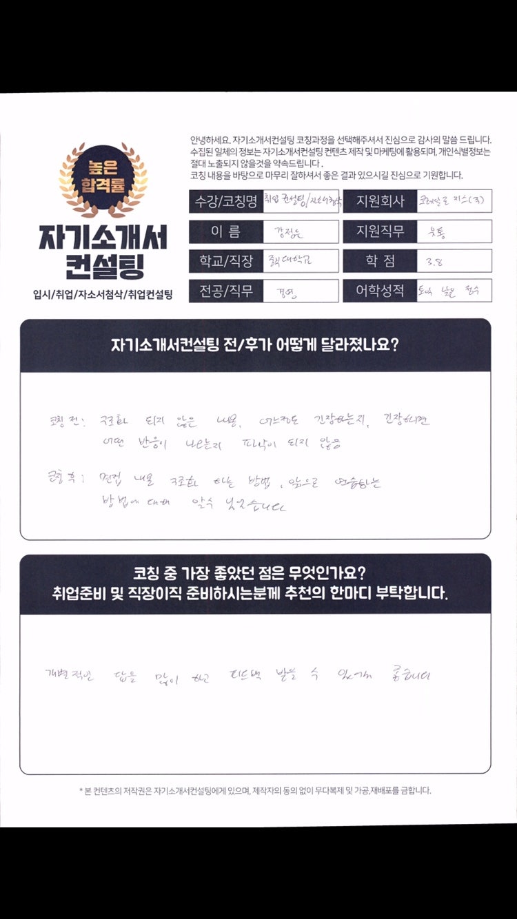 하이트진로 합격 수기! 자소서 첨삭으로 이뤄낸 놀라운 변화^^