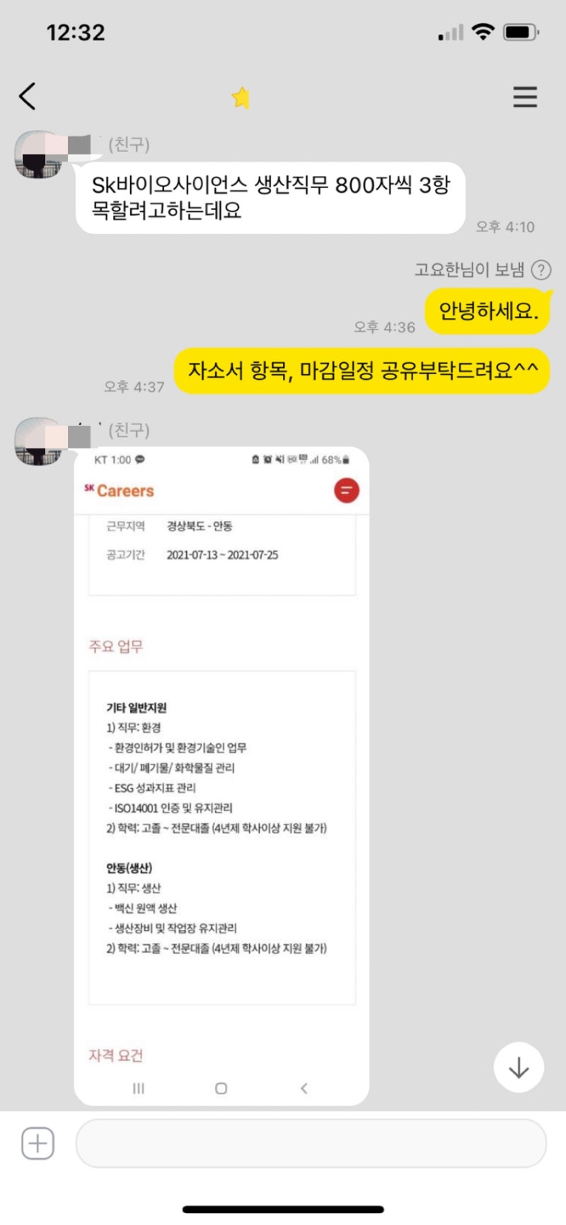SK바이오사이언스 생산직 자소서 작성법, 자기소개서 첨삭 합격후기